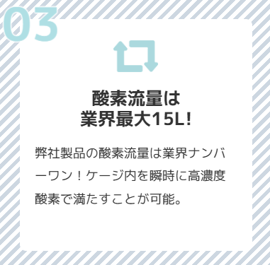 特に、心臓疾患や肺疾患などにより呼吸が浅く早くなったり、体力が落ちて元気がなくなってきた子、手術後の回復期の子に役立ちます。